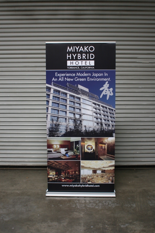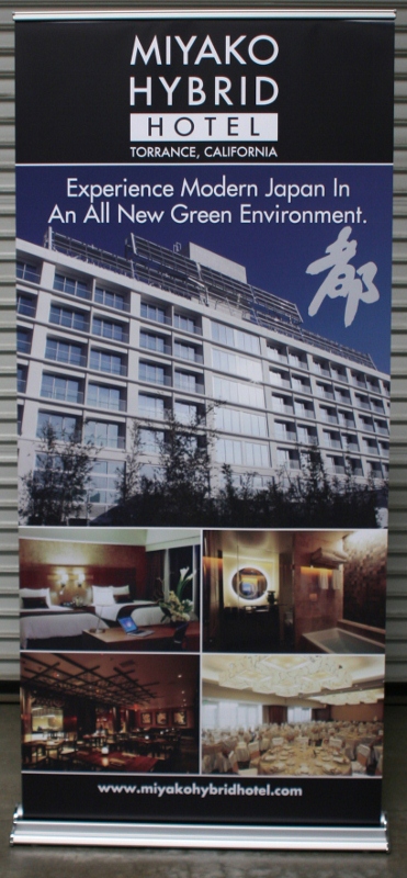 Iconography Studios are proud to have designed and printed these stunning graphics for the Miyako Hybrid Hotel, located in Torrance, CA. The graphics were printed on smooth retractable banner material, and then mounted into a 36″ retractable banner stand.