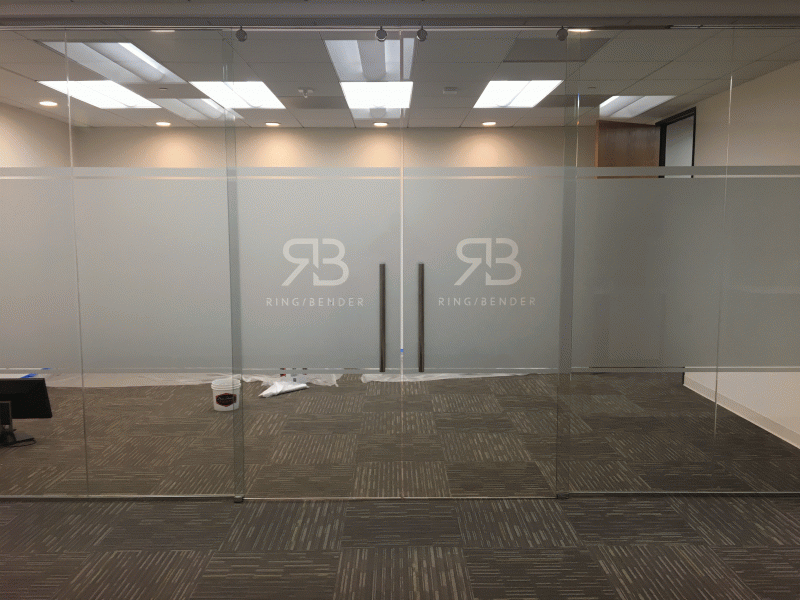Etched vinyl application by Iconography Studios. We are proud to have produced and installed this etched vinyl on a client’s conference room glass walls in Costa Mesa, CA.