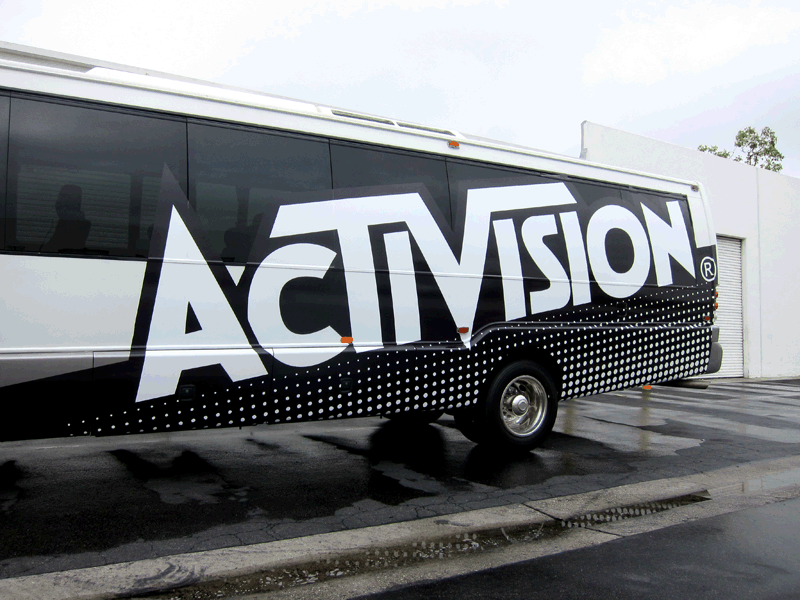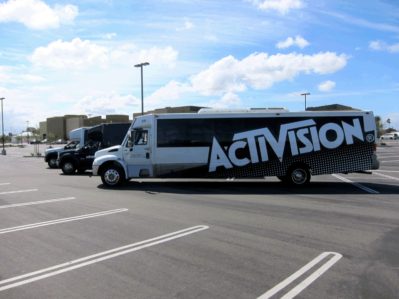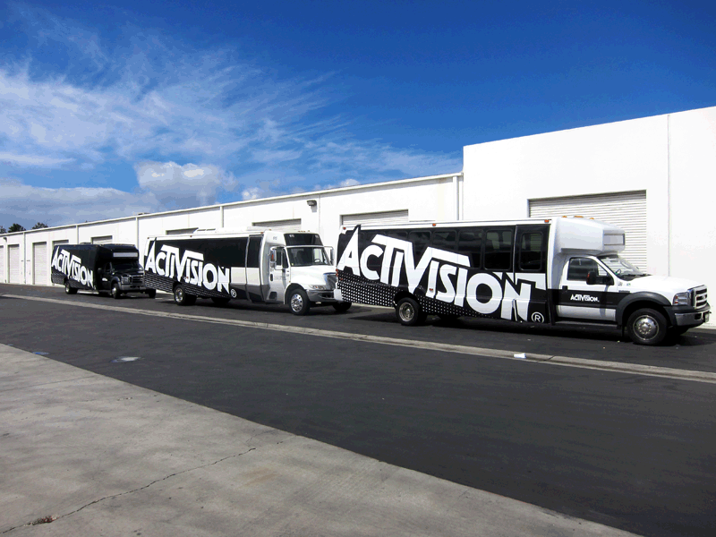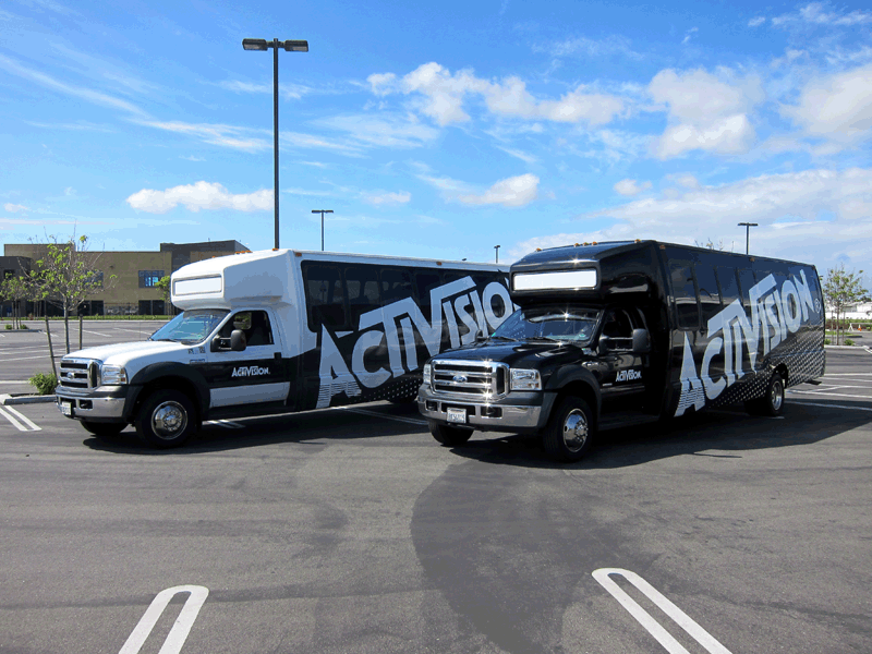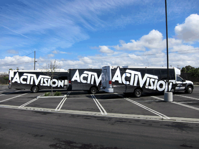 The vehicle wrap experts at Iconography are proud to have produced and installed these graphics for a fleet of shuttle buses for Activision for use at the 2011 E3 Convention in Los Angeles.