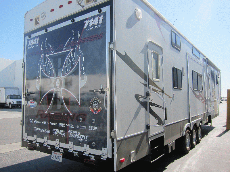 Whether you are hauling your Champion NHRA Jr. Dragster, Indy Car, Formula Drift, or other racing vehicle, be sure to arrive in style with custom racing graphic on your trailer or toy hauler that match the rest of your team graphics.